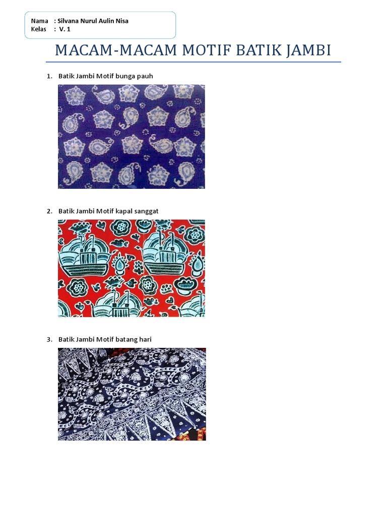 Batik Jambi Dan Keterangannya. Contoh Motif Batik Jambi. Inilah 30 motif batik paling populer dan cocok digunakan di berbagai momen.