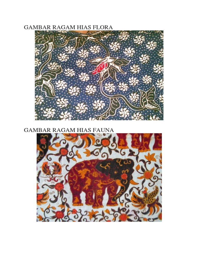 Ragam hias flora dan fauna adalah jenis motif ragam hias yang dikembangkan dari objek flora dan fauna. Ragam hias bentuk fauna dapat dijadikan sarana untuk memperkenalkan kearifan lokal daerah tertentu di Indonesia seperti burung cendrawasih di Papua komodo di Nusa Tenggara Timur dan gajah di. Ragam hias fauna memiliki motif yang terinspirasi dari hewan tertentu.