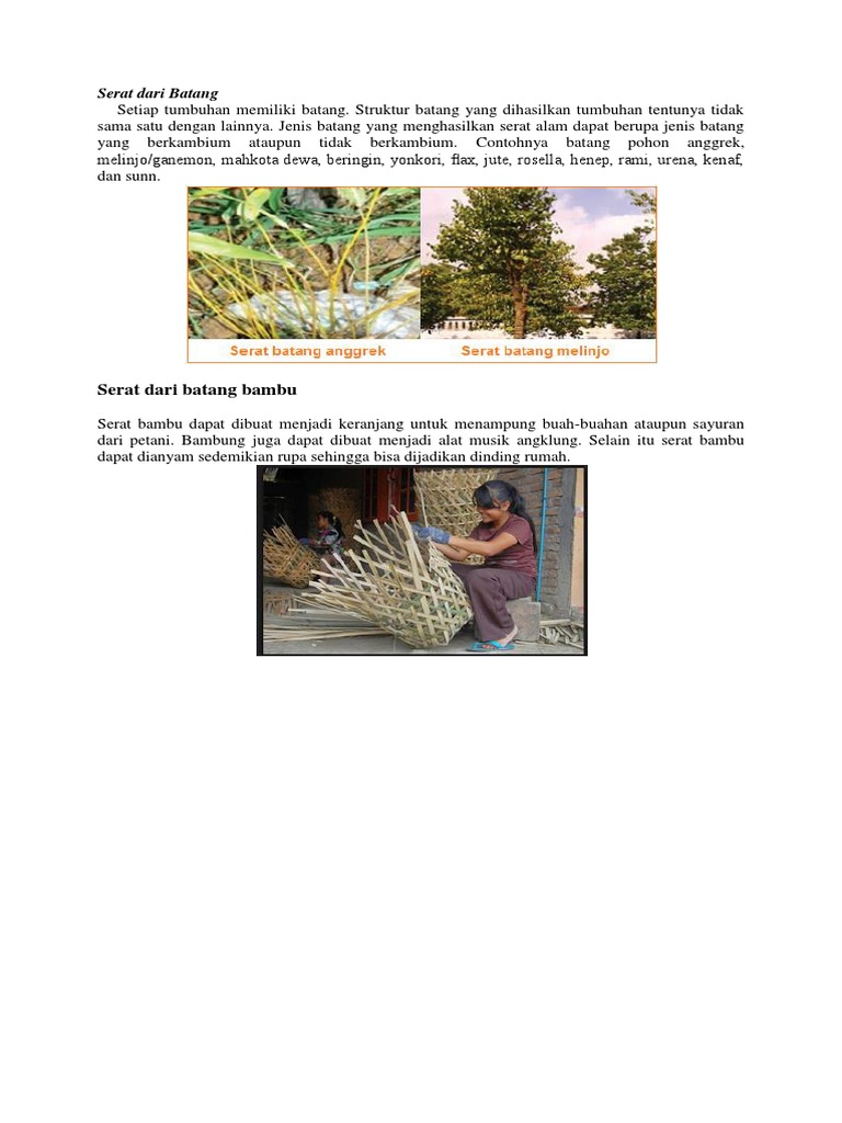 Serat dari Batang Setiap tumbuhan memiliki batang. Kemdikbud Gambar 19 Serat batang mahkota dewa. Bahan pohon anggrek melinjoganemon mahkota dewa beringin yonkori flax jute rosella henep rami urena kenaf dan sunn.